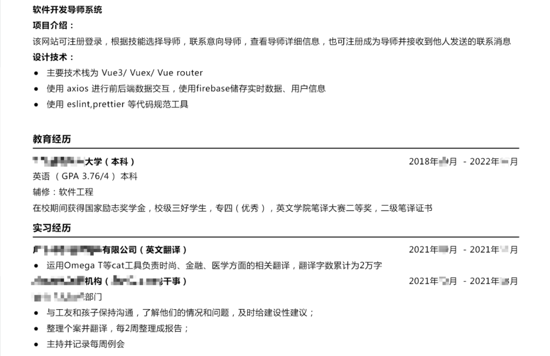 今天会以其中的一次简历指导为例,给大家分享怎么去修改应届生的简历。