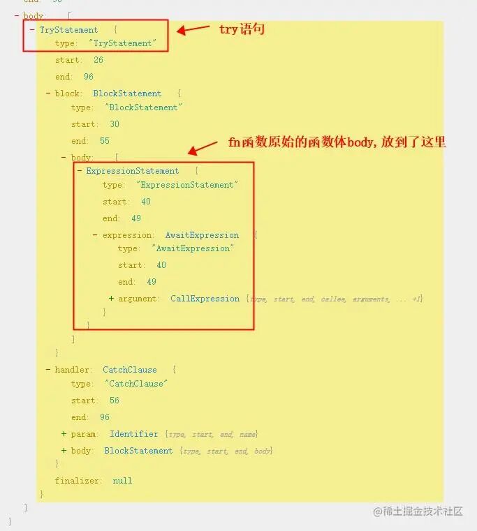 2)找到await节点后,从父路径中查找声明的async函数,获取该函数的body(函数中包含的代码)