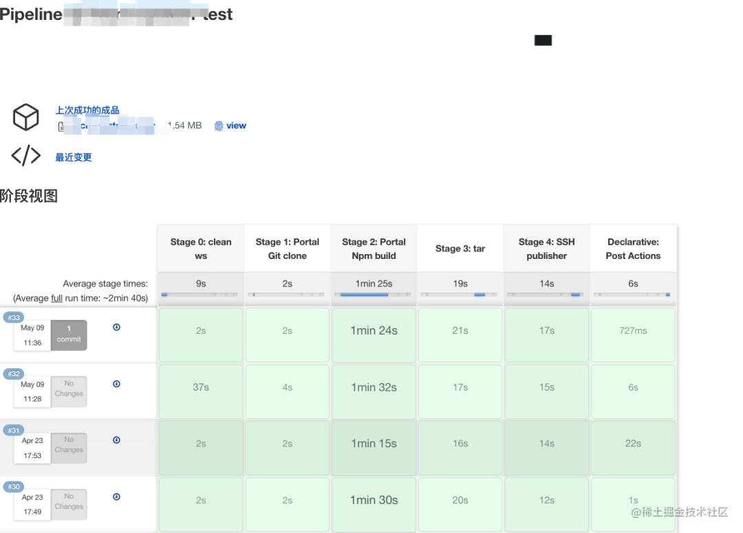 之前是将npm install 和npm run build 统一放在了流水线Protal Npm Build。不方便统计是安装包慢还是npm run build 慢。