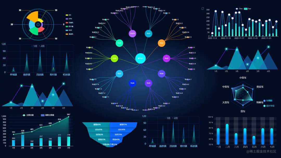 大屏的展示都是基于业务的需求,不是简单的排数据,展示数据。所有的大屏都是基于业务这一基础上展示。