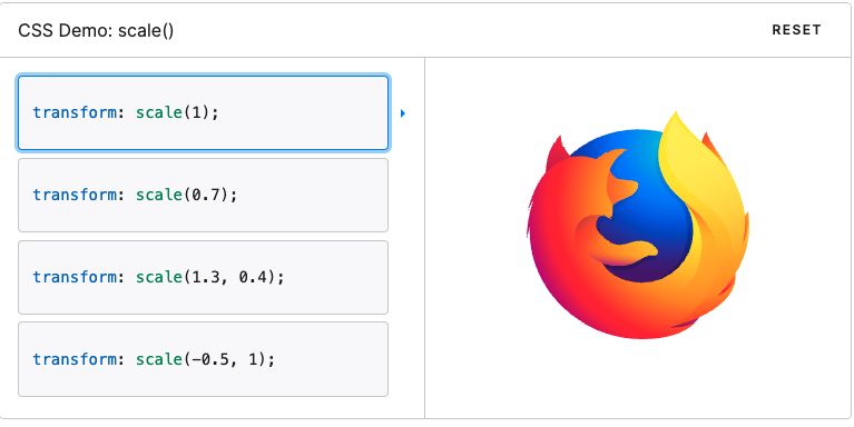 CSS 函数 scale() 用于修改元素的大小。可以通过向量形式定义的缩放值来放大或缩小元素,同时可以在不同的方向设置不同的缩放值。