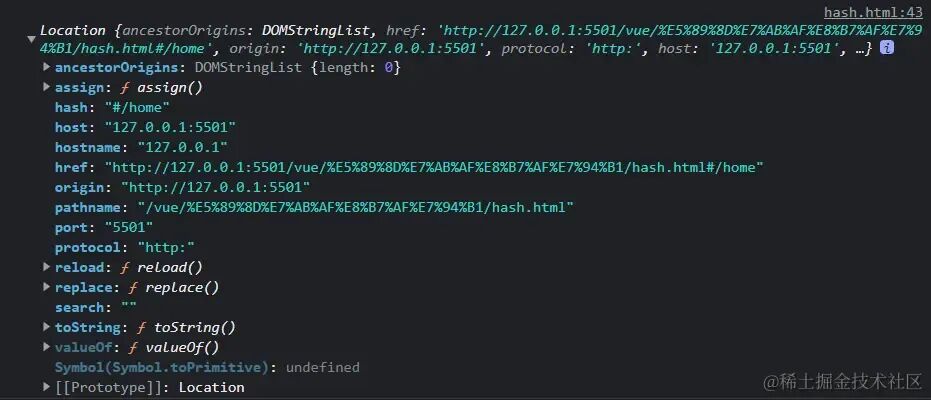 console.log(location) // url详情,里面就有个hash值 liveserver可以帮你把html跑成服务器