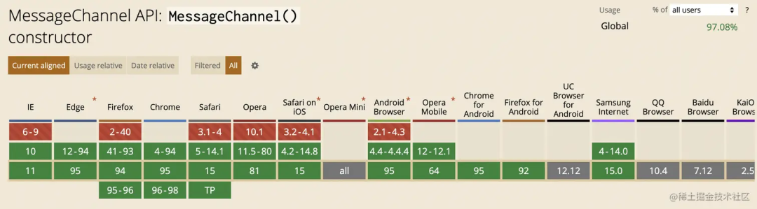 主流浏览器都对MessageChannel支持良好。