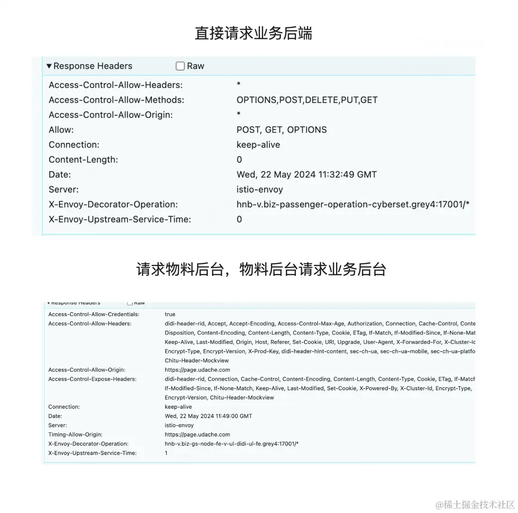 经过仔细对比二者发送的options请求,发现了问题所在: