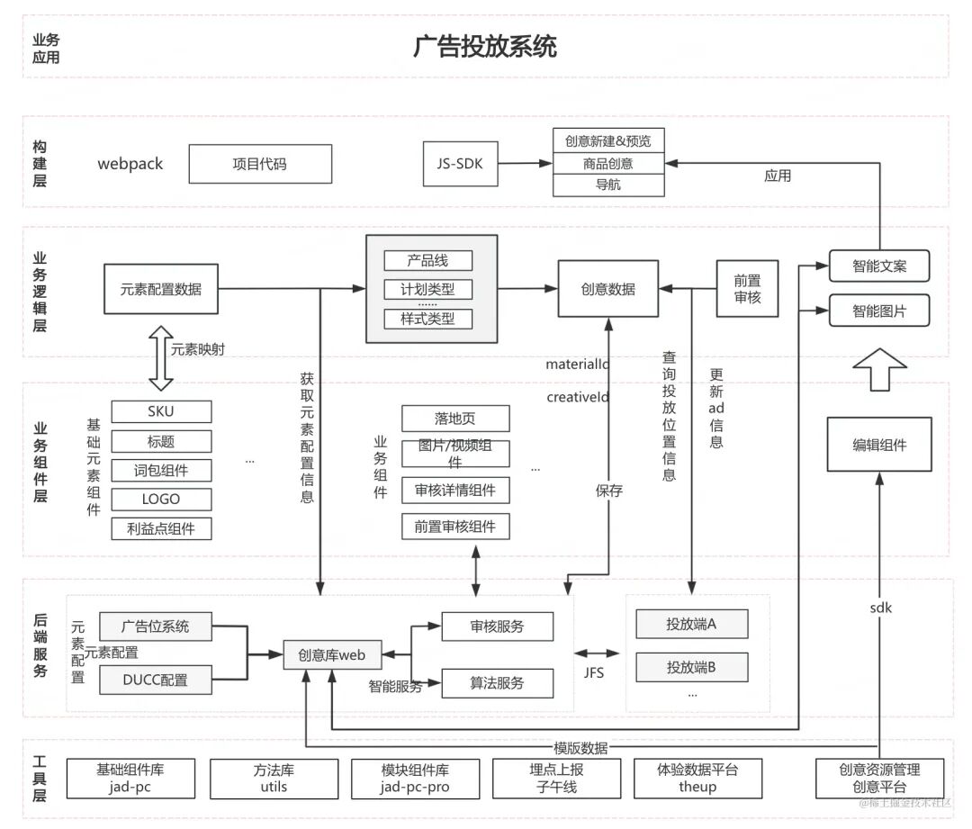 为了解决第一个维护成本这个难题,我当时也是主动同产品、后端同学进行了多轮方案沟通,最终决定采用“配置化+组件化”的方案,这次升级改造的前端就是我自己,把原来根据每一种广告样式定制的代码架构,升级为通过获取广告位系统配置的样式及样式下的元素,动态进行页面渲染。最终达到的效果是,大多数情况下,新增一个广告样式,只需要产品在广告位系统配置一下,整个创意中心都是不需要进行代码开发和上线的。