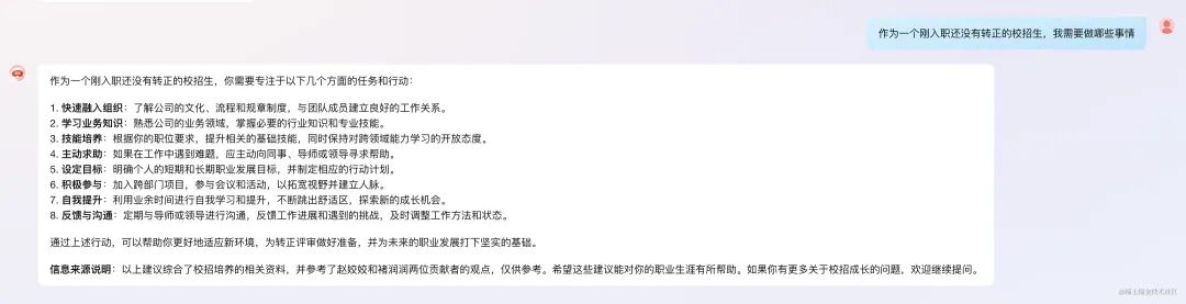 我主要组织成员进行业务开发问题、校招培养,AIGC等主题的探讨学习。并且目前也已经取得一些成果,通过AI Agent的方案沉淀校招成长中的问题及解决方案,能够更好的帮助校招生解决遇到的一些问题。