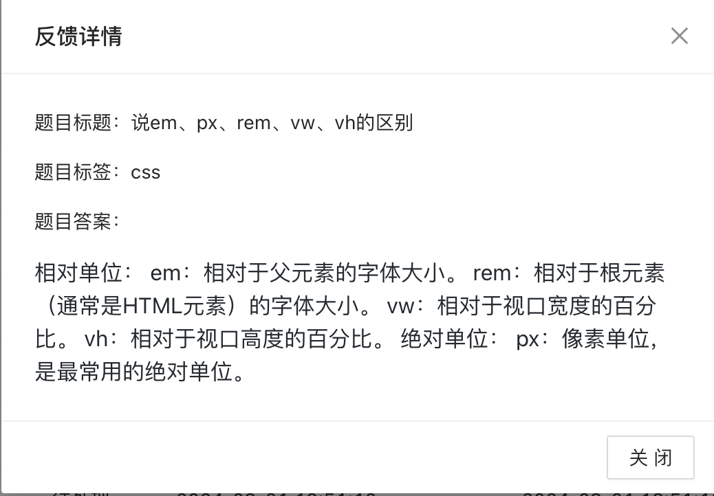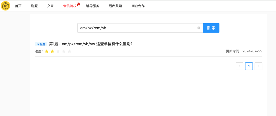 这个题目,其实我们题库系统已经收录过了,大家可以使用题目关键字搜索功能,就能查到对应的题目(点击这里访问小程序题目: em/px/rem/vh/vw 这些单位有什么区别?):