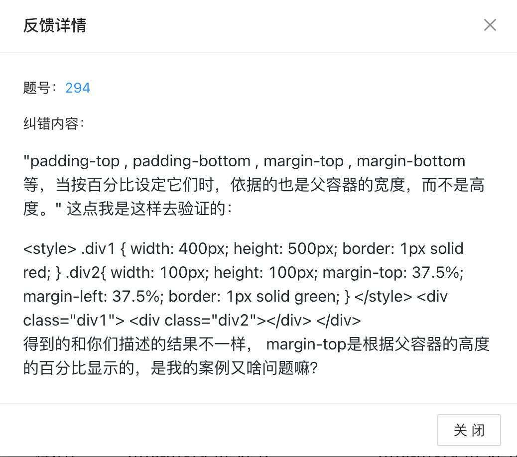我也写了一段demo代码,我的运行情况是,题目答案并没有问题,子元素的padding-top/margin-top都是相对于父元素的宽度来计算的,demo链接在这里,感兴趣的同学可以自己试试:https://output.jsbin.com/huvekeyidi