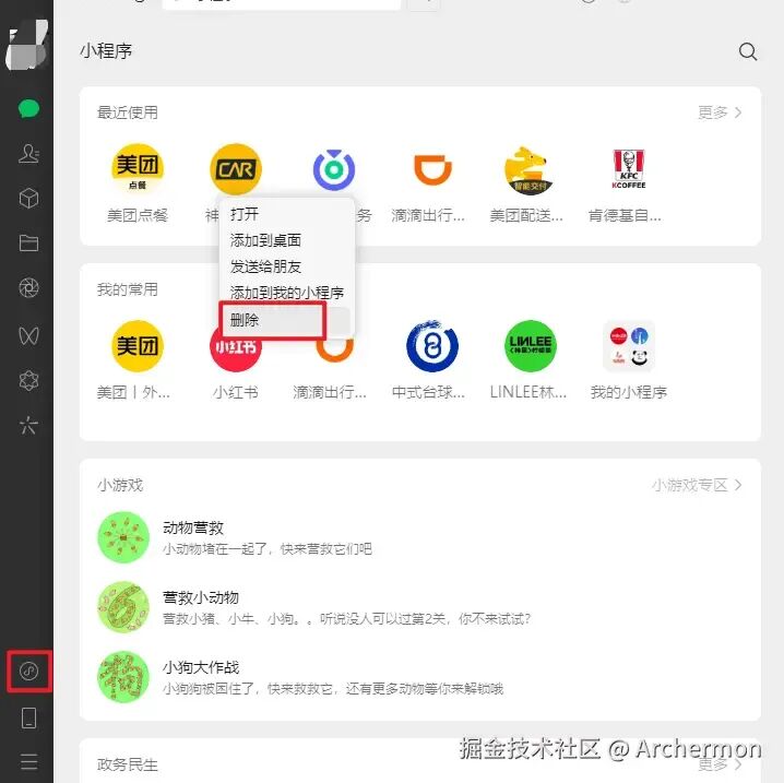 首先先打开某租车小程序,已经打开过的建议先删除小程序避免找不到.wxapkg 文件