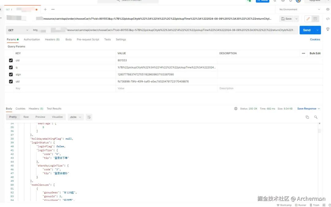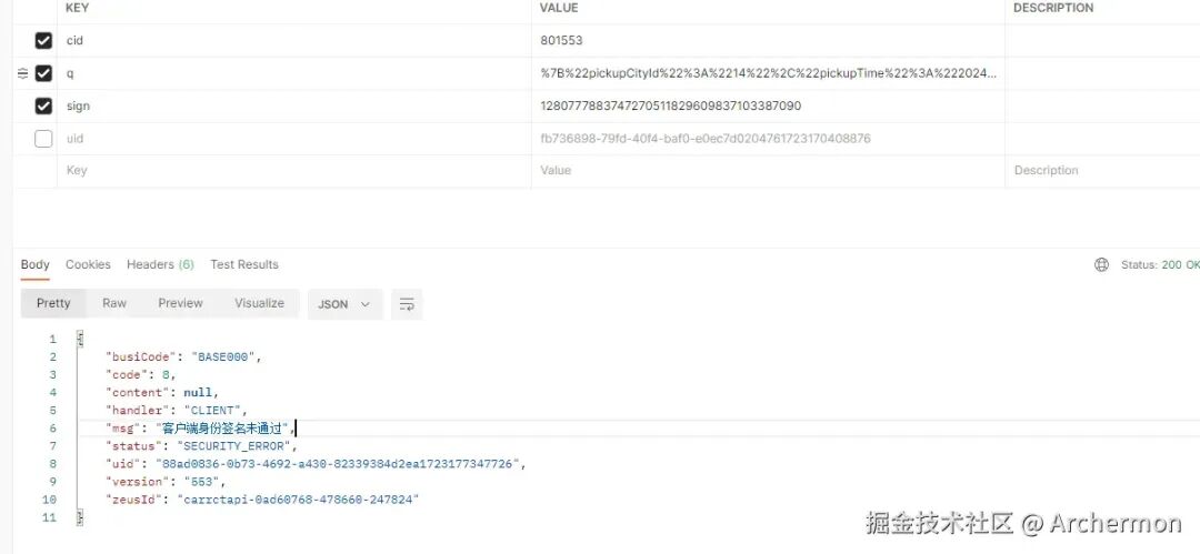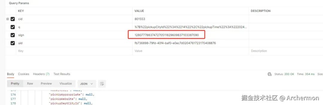 结果是这个数字,是不是很眼熟,打开之前 postman 请求的参数看看,发现是一模一样