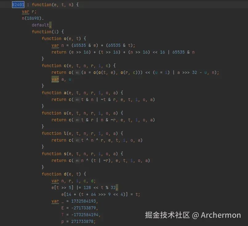 网上看发现 n 是这个函数的参数,n.n(m)也不知道是什么意思,看不懂,不过肯定是一个函数,那就直接先看 m 函数,传入了一个数字,搜索一下这个数字
