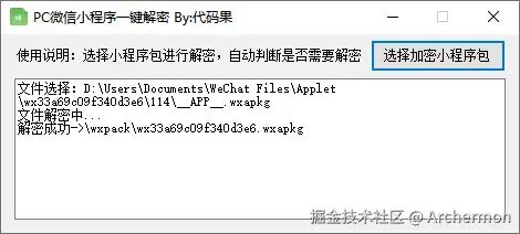 进入文件夹,打开 UnpackMiniApp.exe 文件,选择需要破解的微信小程序包