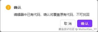 此时不能盲目的向编辑器写入代码,因为编辑器中可能存有代码,覆写将导致代码丢失,所以要做好提示