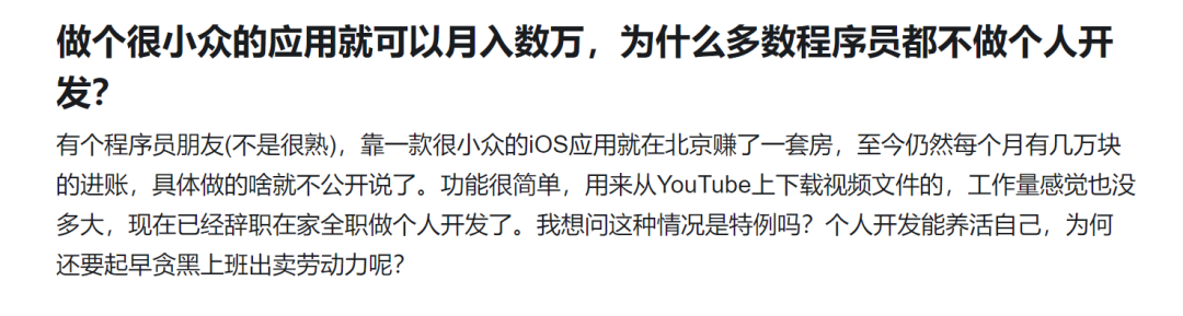 我偶然看到了这样一个问题 "为什么大部分程序员不通过开发个人项目来赚钱呢?" 。下面有个老哥的回答挺不错的,完整分享了自己独立开发软件并实现月入接近3万的经历,希望能对大家有所启发。下面是他的分享: