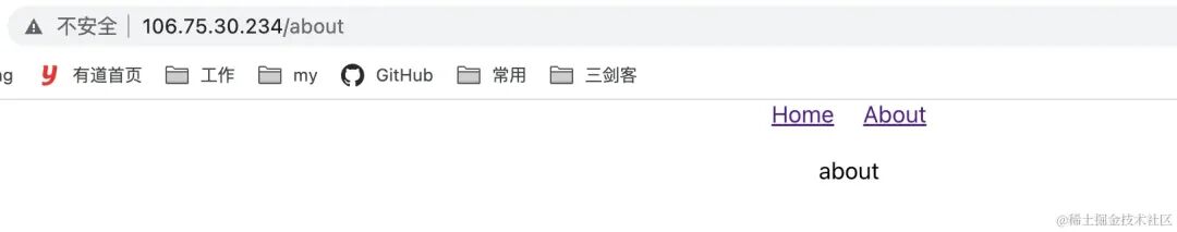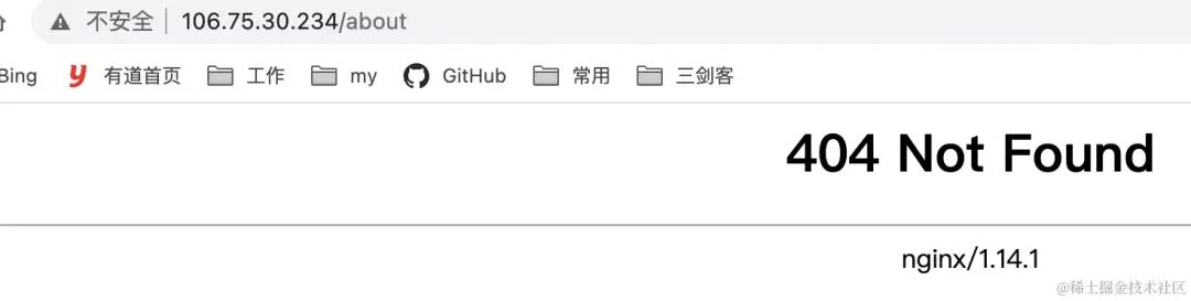 重启Nginx,此时我们访问外网IP(默认80端口,下面默认都是访问80端口),可以看到