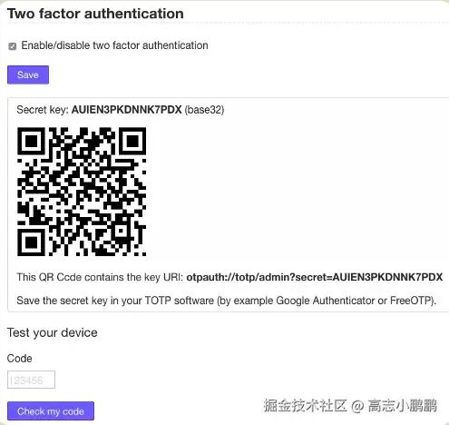 实现起来也比较简单,后端使用「sha1加密一串密钥」,生成哈希值,用户扫码绑定,然后每次将这个验证码提交给服务器进行比对即可