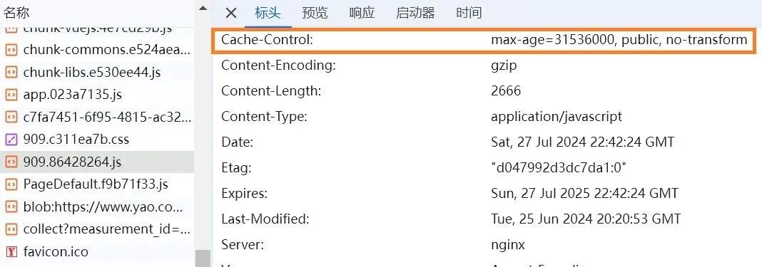 另外,还特别添加了NGINX 服务器自己的 Cache-Control 头的配置: