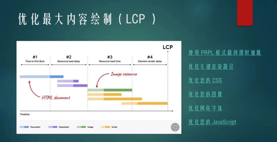 属性。在了解完 CRP 和 LCP 的触发元素后,我们已经知道优化 LCP 主要是确保关键内容尽快渲染在用户视口中,从而改善页面的加载性能。以下是一些具体的优化策略: