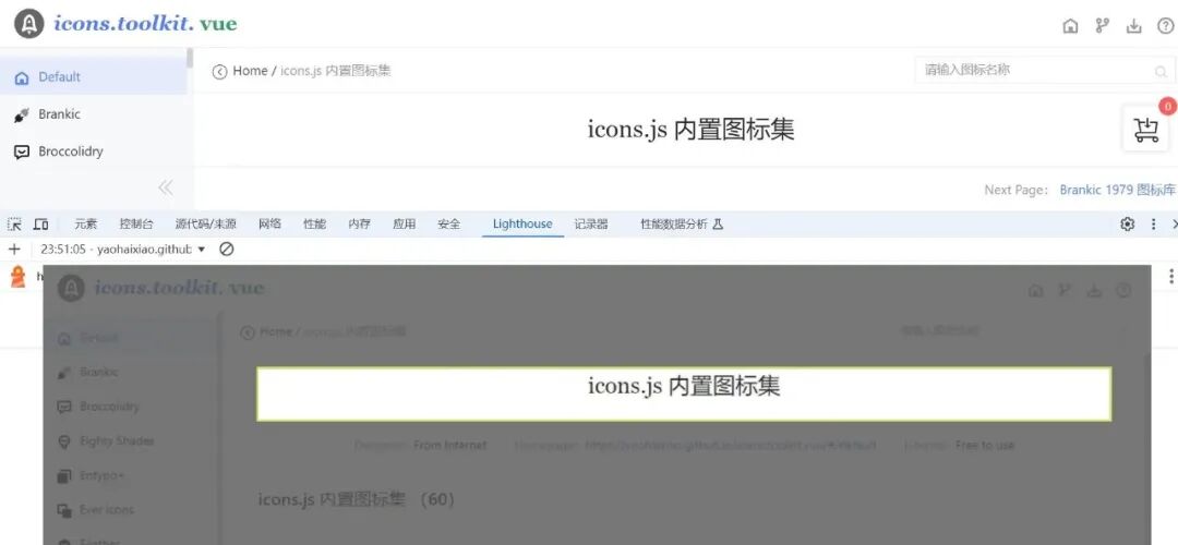 如图所示通过 lighthouse 分析出,我的 icons.toolkit.vue 项目页面的 LCP 元素是 H1 标签。