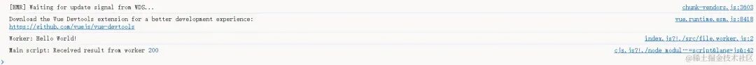 现在,当组件被挂载时,它将启动worker,发送一个消息,并在收到worker的响应时打印结果。