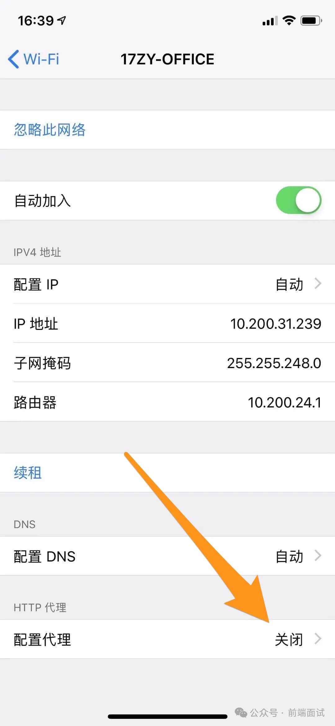 设置代理步骤:设置 - 无线局域网 - 选中网络 - HTTP