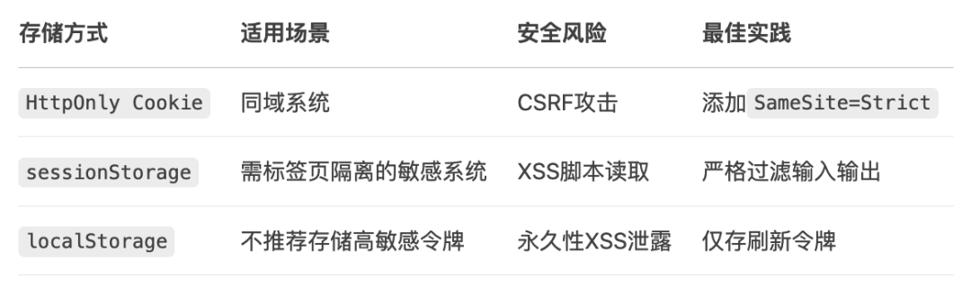 令牌存储管理:根据安全策略选择存储介质